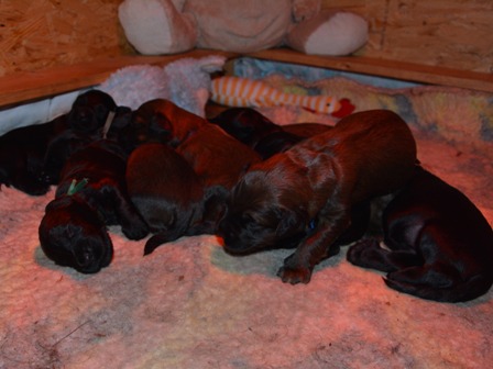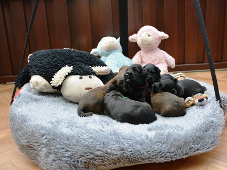 fauven Rüden, 2 Rüden noir und 4 Hündinnen noir.