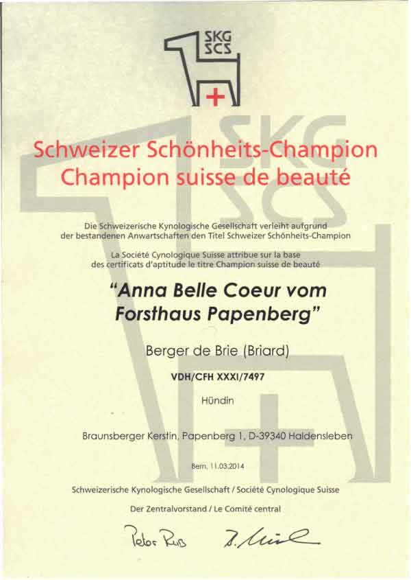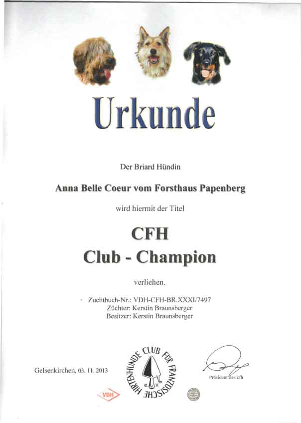 Chani wurde bei der Herbstkörung des Schweizer Briardclubs angekört. Wir