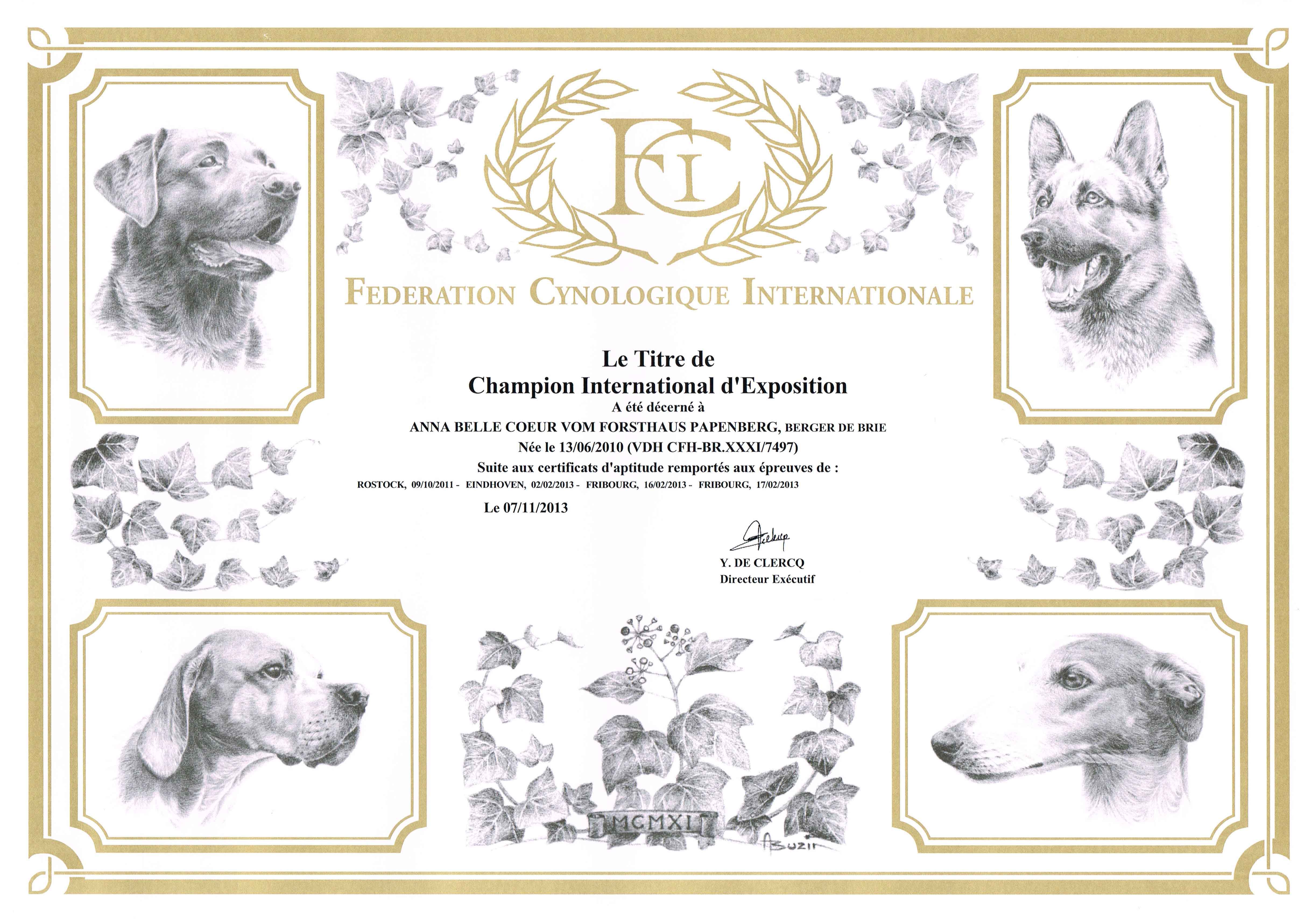 Unser kleiner VDH-Jugendchampion hat seine Urkunde per Post bekommen!
